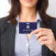 Crachás de visitante profissional com texto de modelo em design de dupla face que você pode usar para substituir por código QR e informações. Usados como passes temporários para visitantes da empresa, convidados de eventos e convenções e mais.