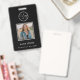 Um ID de funcionário personalizado preto e branco minimalista e elegante que você pode personalizar. Substitua a foto, logotipo da empresa ou negócio e edite o texto e o código QR na parte de trás. Perfeito para uso em escritório, negócios ou escola.