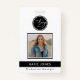 Uma identificação personalizada minimalista e elegante do funcionário de fotos preto e branco que você pode personalizar. Substitua a foto, o logotipo da empresa ou da empresa e edite o texto e o código QR no verso. Perfeito para uso profissional ou escolar.