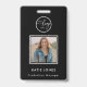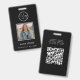 Uma identificação personalizada minimalista e elegante do funcionário de fotos preto e branco que você pode personalizar. Substitua a foto, o logotipo da empresa ou da empresa e edite o texto e o código QR no verso. Perfeito para uso profissional ou escolar.