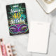 Cordão com código QR para comprar uma bebida para a aniversariante. Peça a todos os convidados da festa de aniversário que usem esses cordões para obter bebidas grátis! Este design deslumbrante inclui penas de pavão cintilantes com uma máscara festiva do Mardi Gras.