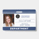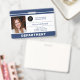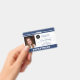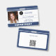 Cartão de identificação horizontal moderno personalizado para funcionários - crachá elegante azul marinho e branco com o logotipo da sua empresa, foto, nome, cargo, código QR ou código de barras e outros detalhes - se necessário. +++++++++++++ Fácil de personalizar com suas informações em ambos os lados! +++++++++++++++ Adequado para funcionários corporativos, gerentes, executivos, contadores, funcionários de escritório de negócios, armazéns, empresas de varejo e logística. +++++++++ Por favor, note que a cor do fundo, as fontes e os tamanhos do texto podem ser alterados. Você pode enviar um código QR ou código de barras para ser impresso ou adicionar qualquer outro texto no verso.