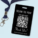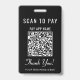 Receba pagamentos em qualquer lugar que faça negócios com este distintivo de QR Code Scan to Pay preto, limpo e profissional. Este distintivo leve permite que os clientes enviem pagamentos instantaneamente com um rápido escaneamento - perfeito para serviços móveis, eventos movimentados e checkout em movimento. O layout minimalista apresenta uma chamada para ação em negrito, um código QR claramente centralizado, uma mensagem amigável de "Obrigado" e letras brancas modernas. Faça o upload do seu código QR e adicione o nome do seu aplicativo de pagamento e o nome da sua empresa para um visual polido e personalizado. Ideal para vendedores, artistas, bartenders, cabeleireiros, maquiadores, motoristas de entrega, vendedores de mercado e funcionários de eventos, este distintivo de pagamento vestível mantém o checkout rápido, sem contato e conveniente - sem necessidade de espaço no balcão.