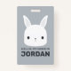 Este design apresenta um coelho bonito com um nome personalizado no estilo de fonte sans serif moderno da cinza sobre o fundo da cinza de luz.