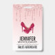 Um design moderno e moderno num nome de etiqueta. O fundo tem uma imagem de brilho brilhante rosa-brilhando, ao longo do topo. O resto do fundo é um delicado gradiente cor-de-rosa pastel. Um par de estiletas cor-de-rosa alto adiciona uma vibração na moda. Uma linha divisora de classe de rico separa seu nome e profissão.