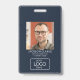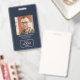 design de crachá de ID de na moda com uma foto destacada e logotipo personalizado. Código QR no verso para compartilhamento inteligente rápido de contatos. Perfeito para identificação e segurança da empresa. Também, excelente para identificação profissional de eventos.