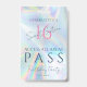 Crachá de Convite de Acesso VIP Holográfico Sweet Sixteen que você pode personalizar facilmente. Perfeito para qualquer evento e eventos corporativos. Reutilize completamente este modelo de design para outras ocasiões especiais em sua vida clicando em "Editar usando Ferramenta de Design" aninhado sob o botão "Personalizar" para alterar a cor do fundo, fontes e layout