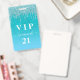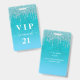 Um distintivo moderno, elegante e glamoroso para uma festa de aniversário de 21 anos (ou de qualquer idade). Um degradê de brilho em tons de teal, verde e azul com efeito de brilho falso pingando e tinta escorrendo. Personalize e adicione um nome. O nome é escrito com um estilo de letra à mão moderno com floreios. O texto: VIP Número 21. Para manter os floreios, apenas exclua o nome da amostra, deixando os espaços ou emojis antes e depois do nome.