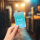 Crachá Convite vip azul com gotas de brilho teal de anive