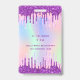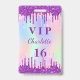 Crachá Convite VIP de aniversário com brilho roxo arco-ír
