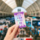 Para uma festa de Sweet 16, 16 anos (ou qualquer idade). Um fundo holográfico moderno em cores pastel de arco-íris em rosa, roxo, dourado rosa, verde menta. Decorado com gotas de brilho falso, visual de tinta pingando. Personalize e adicione um nome e idade 16. Letras roxas.
