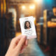 Crachá Cor-de-rosa-foto do agente de assinatura de emprés