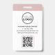Faça uma impressão profissional com este na moda e o crachá moderno de identificação. Um modelo de dois lados mostrando sua foto de identificação dentro de um quadro circular e personalizado com seu nome, detalhes comerciais, logotipo e um código QR digitalizável. Personalize o texto para se adequar à sua empresa. Perfeito para um Notário Público, Agente de Assinatura de Empréstimo, Agente de Entrega de Confiança Notária Certificada, CNTDA, Notário Móvel, Apostille, profissional legal ou outro funcionário de negócios. Cores design impressas: cor-de-rosa poeirenta, preto e branco. Compre a coleção on-line para obter ideias e suprimentos de produtos mais populares, projetados para notários!