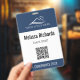 Streamline your check-in process with this Corporate Event QR Code ID Badge Template, designed specifically for trade shows, conferences, and large-scale summits. This professional badge features a prominent top header for your company logo and a central QR code area, making it perfect for touchless entry or digital networking. The clean white middle section clearly displays the attendee or staff member's name and role, framed by sophisticated navy blue accents for a polished, official look. Durable and fully customizable, it allows organizers to easily update event titles and individual details, ensuring a cohesive brand experience for all guests, sponsors, and team members.