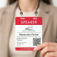 Command attention at your next tech summit with this Red Corporate Event Speaker QR Code ID Badge, designed for high-visibility and seamless networking. This professional vertical badge features a bold red header and footer that instantly identifies the "SPEAKER" or specific roles like VIP and staff. The clean white center provides ample space for your company logo, name, and job title, while the integrated QR code allows for instant digital contact sharing or session check-ins. Made from durable, high-quality materials, this fully editable template is the perfect identification solution for IT conferences, trade shows, and corporate seminars looking for a modern, high-energy aesthetic.