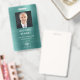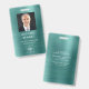 Cargador de identificação personalizado moderno verde metálico falso. Personalize este crachá de identificação corporativo com o nome do seu funcionário, cargo, foto e logotipo da sua empresa na parte frontal e seu texto de informação personalizado na parte traseira. A foto do funcionário funciona melhor no formato quadrado. Seu logotipo funciona melhor como um PNG em formato quadrado com fundo transparente. O logotipo de espaço reservado que você vê no crachá será completamente substituído pelo design do seu próprio logotipo.