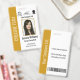 Este crachá de identificação profissional apresenta um design moderno em bloco de cores dourado mostarda e branco, perfeito para branding corporativo e equipes criativas. A frente inclui um espaço para foto clara, área para logotipo da empresa e detalhes do funcionário, enquanto a parte traseira fornece espaço para endereços de devolução e um código de barras escaneável. Durável e fácil de ler, este crachá vertical é uma ferramenta essencial para segurança do escritório, eventos de networking e manutenção de uma identidade de marca polida.