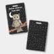 Este nome ou crachá de identificação tem uma coruja marrom com olhos amarelo-dourados sentada em um galho de árvore usando um colar azul em um céu noturno preto com estrelas brancas e uma lua crescente branca. O verso é preto com estrelas brancas. Personalize seu nome e informações com os modelos.