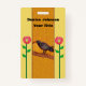 Esse nome ou crachá de identificação tem um centro amarelo-mostarda com um corvo preto em um galho de árvore com duas vibrantes flores abstrato vermelhas em caules com folhas sobre fundo amarelo-claro. O dorso é amarelo-claro. Personalize seu nome e informações com os modelos.