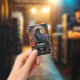 Placa de identificação com um corvo preto. Um arco amarelo atrás.