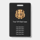 Cartões de identificação de crachás de associação do clube VIP masculino elegantes projetados com um emblema de monograma de coroa de rei muito importante e sofisticado que tem as iniciais VIP, você pode substituir ou deixar como mostrado em um formato de modelo que você pode personalizar online. Disponível em massa e por pacote para um design econômico.