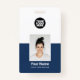Personalize facilmente este Crachá de Identificação de Segurança de Nome de Funcionário Personalizado com Foto, Nome do Funcionário, profissão e logotipo de negócio. Um simples design de negócios em marinho azul e branco totalmente personalizável nos tamanhos frontal e traseiro, fontes básicas e modernas sans-serif para uma aparência profissional e clara. Os crachás de identificação estão disponíveis com jardim, clipe de metal ou com retratável. Sem ordem mínima.