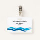 Os crachás simples contudo modernos do trabalho do empregado do negócio do canalizador com o gráfico colorido da onda de água azul para representar o trabalho do encanamento e para espaçá-lo podem adicionar seus nome da empresa e nome profissional substituindo os modelos do texto com seus próprios nomes. Projetado para uma frota do canalizador, um contratante, ou um canalizador independente.