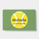 Crachás personalizados para jogador de tênis e treinador. Modelo de design de bola de tênis amarela. Adicione seu nome, sobrenome, nome da família, sobrenome, letras iniciais, título, função, etc. Crachás elegantes para funcionários de escritório, funcionários, funcionários da empresa, voluntários, colegas de trabalho, colegas, trabalhadores corporativos, professores, treinadores, gerentes de negócios, companheiros de equipe, instrutor, chefe, tripulação, membros, amigos, convidados, etc.
