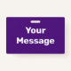 Você pode criar sua própria mensagem em texto branco sobre este crachá roxo real.