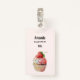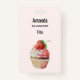 Nome de etiqueta com uma ilustração brilhante com um cupcake delicioso. Sorvete branco e um morango grande adoram este doce doce doce.