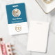 Easily personalize this Custom Employee Name Badge with Photo, Scan Bar Code and business logo. A simple business design in vibrant blue and white colors fully customizable in front and back sizes, sans-serif basic and modern fonts and a professional and clear look. Avaiable with lanyard, metal clip or with retractable. No minimum order.