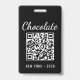 Custom Chocolate Festival QR Code Exibitor ID Badge with clean black and white design. Ideal for vendors and exhibitors who need clear identification at chocolate events, food festivals, and trade shows. Professional, modern, and easy to personalize.