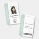 Make a lasting first impression with this professional pastel green vertical employee ID badge, designed for modern businesses, consultants, and creative teams. This clean, minimalist layout features a stylish muted sea green sidebar with vertical company text, a clear photo placeholder, and space for your logo and barcode. It is the perfect practical solution for maintaining security while elevating your brand's corporate identity. Simply upload your headshot, enter your staff details, and customize the return address on the back for a sleek, ready-to-wear identification card.