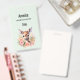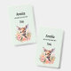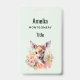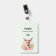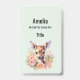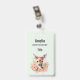 Crachá de nomes com uma bela ilustração com um veado fofo. Cercados por rosas e flores cor-de-rosa.