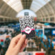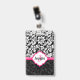 Crachá Damasco preto branco e cor-de-rosa monograma