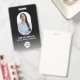 Crachá de foto ID com o logotipo da sua empresa, foto pessoal e informações personalizáveis.