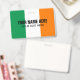 Crachá de clipe metálico personalizado com logotipo de bandeira irlandesa. Etiquetas de plástico com clipe de metal na e opção de cabo de ferro. Texto personalizável. Como opção, adicione uma foto no verso. Etiquetas de identificação úteis para o escritório, o trabalho voluntário, eventos, reuniões, reuniões, reuniões, reuniões, segurança, membros, funcionarios, pessoal, colaboradores, Dia de São Patrício, festival, equipes desportivas, clubes, delegação política e muito mais. Bandeira da Irlanda.