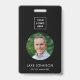 Crachá de funcionarios de funcionários negros moderno com foto, código QR, logotipo da empresa e nome e cargo do funcionário. Você pode personalizá-lo facilmente com seus detalhes comerciais.