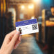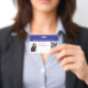 Crachá de código QR e foto de ID horizontal azul