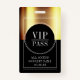 Ouro modelo metálico e VIP preto tudo acessam o crachá do concerto. Substitua pelo seu próprio nome e data do concerto. Estilo elegante de luxo.