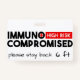 Este crachá é para aqueles de nós, na população, que são imunocomprometidos e estão em risco mais alto de pegar qualquer doença que esteja ocorrendo. Seja por causa de um medicamento que faz o seu sistema imunitário fraco, você tem uma condição de saúde que o afeta, ou você é uma geração mais nova ou mais madura, esse crachá é para você. Vamos gentilmente lembra as pessoas de serem cautelosas, especialmente ao seu redor ou a um ente querido com esse crachá. Coloque-o em suas roupas, guias de mobilidade, tanque de oxigênio ou bolsa de engrenagens crônicas. Verifique as minhas outras versões deste crachá.