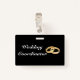 Duas alianças de ouro aparecem neste crachá do coordenador do casamento. Este crachá preto pode ser personalizado com seu título como "Coordenador de Casamento".