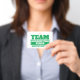 Nome de etiqueta personalizado da equipe verde. Ideal para equipes de escritório, eventos familiares, jogos divertidos ou equipes esportivas. Personalize este design com o nome da sua equipe ou nome da família e o nome da equipe ou do lema e nome e a sua função no verso. Outras cores disponíveis. Excelente para a formação de equipes, eventos e ofertas de equipes motivacionais. Projetado por www.mylittleeden.com no zazzle