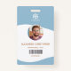 Um crachá de ID corporativo elegante e fácil de personalizar que inclui o nome, a posição, o logotipo da empresa, os detalhes comerciais e QR ou código de barras do seu funcionário.