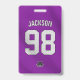 O Crachá de Esporte com a Placa de Roster do Jogador Púrpura Personalizado é a maneira perfeita de mostrar seu espírito de equipe. Com as cores e mascote da sua equipe, é claro que você se destaca na multidão!