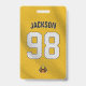 O Crachá Esportivo de Placa de Jogador Amarelo Personalizado é a maneira perfeita de mostrar seu espírito de equipe. Com as cores e mascote da sua equipe, é claro que você se destaca na multidão!