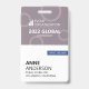 Um crachá moderno para eventos de conferências de negócios. O design mostra o nome da organização que executa o evento e o nome do evento na metade superior. A metade inferior do crachá exibe o nome, a função comercial e de evento da pessoa que está participando do evento. Este crachá de eventos comerciais é ideal para seminários, fóruns anuais, reuniões globais, conferências ou shows de comércio. Cor: Cinza