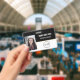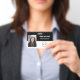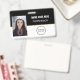 Personalize o nome da foto, logotipo da empresa e código de barras neste crachá de funcionário moderno.