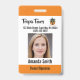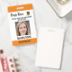 Personalize o crachá de identificação da foto do seu negócio de turismo. Todos os detalhes podem ser modificados ou removidos. Foto, empresa, logotipo, nome, departamento/divisão/título, endereço e e-mail. Texto preto nítido em fundo branco com faixa colorida laranja tropical na parte superior e inferior. Cada detalhe pode ser personalizado.