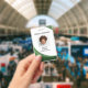 Simples, mas não comum, design de onda verde ao longo da borda inferior e para cima no lado esquerdo e um toque de cor no canto superior direito. Adicione o nome da empresa, a foto do funcionário e o cargo para completar a frente. Se você precisar de um código de barras, adicione-o ao verso. Não precisa de um código de barras? Remova o que está atualmente presente.